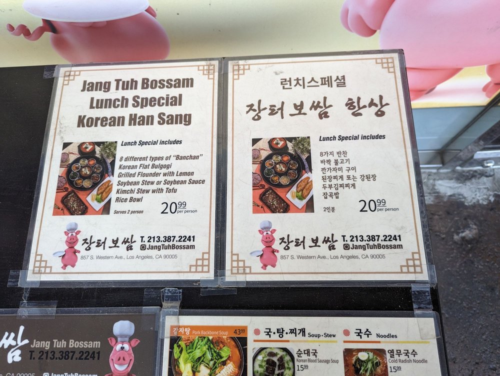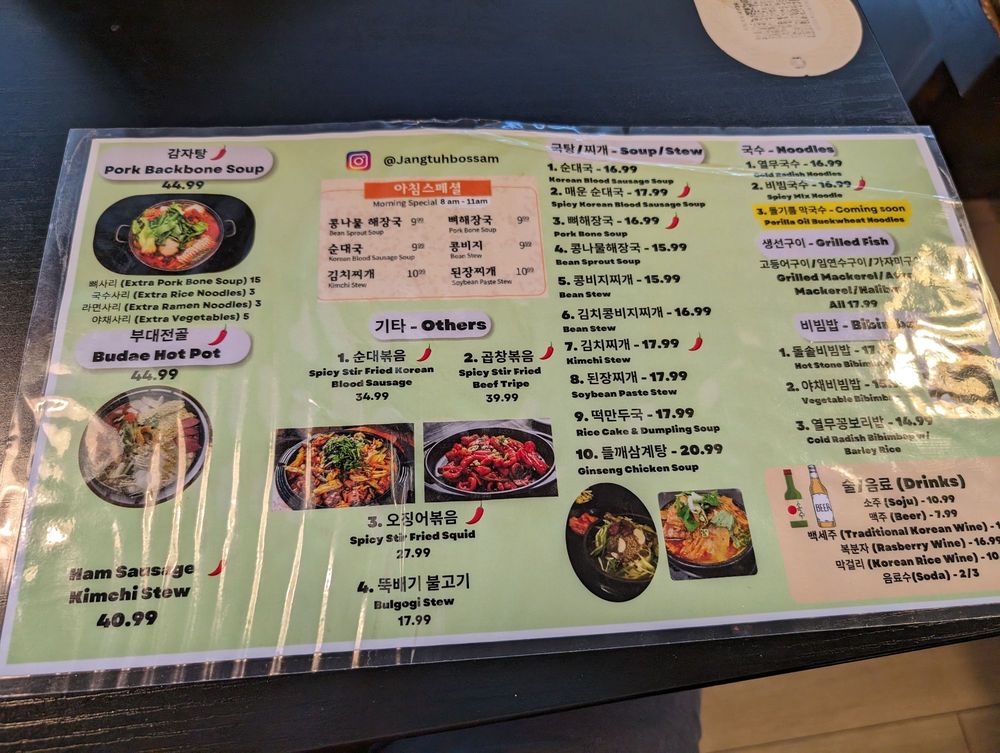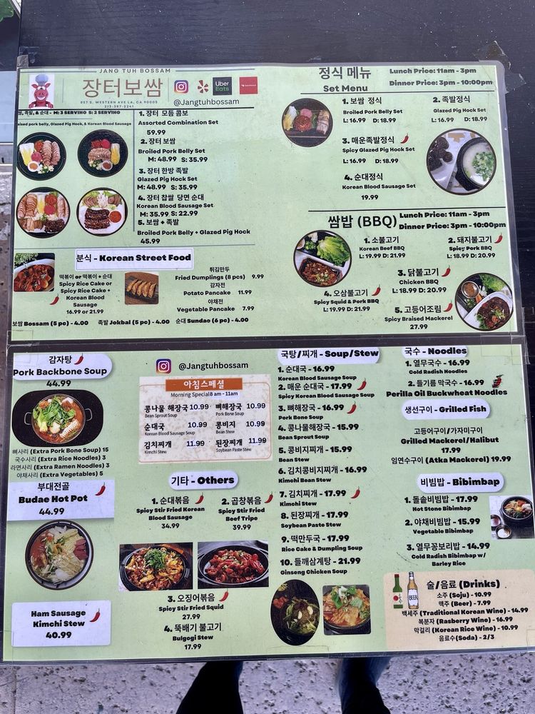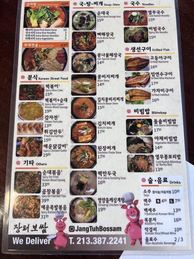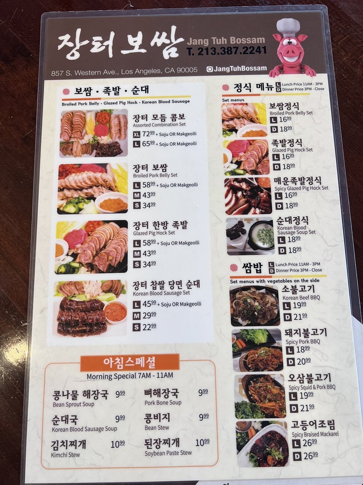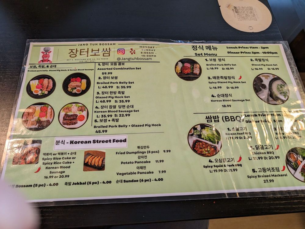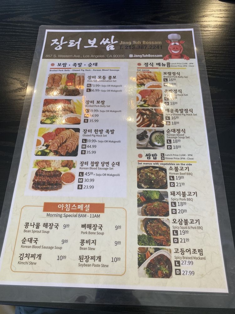 Jang Tuh Bossam in Los Angeles offers authentic Korean cuisine with a variety of options for every preference. The menu includes traditional dishes like Korean Blood Sausage Soup, Kimchi Stew, and Grilled Mackerel. Customers rave about the quality and freshness of ingredients, especially praising the Bossam (sliced boiled pork belly) and Pork Bone Soup. The restaurant provides a cozy atmosphere with attentive service, making it a favorite spot for many. With vegan and vegetarian options available, Jang Tuh Bossam caters to a diverse range of tastes. The generous portion sizes and reasonable prices further enhance the dining experience, leaving customers satisfied and eager to return. Experience the taste of fire and true homestyle Korean food at Jang Tuh Bossam.